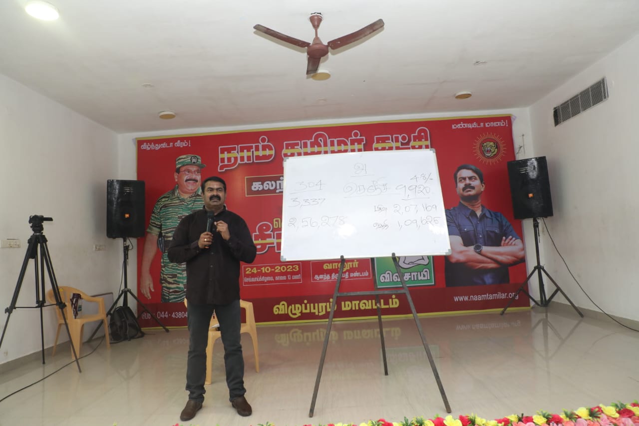 நாம் தமிழர் கட்சியின் உள்கட்டமைப்பை மறுசீராய்வு செய்து, வலிமைப்படுத்தி, எதிர்வரும் தேர்தல்களுக்கு அணியப்படுத்துவதற்காக, தலைமை ஒருங்கிணைப்பாளர் செந்தமிழன் சீமான் அவர்கள் தலைமையில் 24-10-2023 அன்று விழுப்புரம், செஞ்சி, திண்டிவனம், வானூர், திருக்கோவிலூர் (கள்ளக்குறிச்சி), மயிலம் மற்றும் விக்கிரவாண்டி தொகுதிகளுக்கான கலந்தாய்வு கூட்டம் நடைபெற்றது.