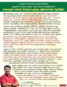 தமிழ் மண்ணை கடந்த அரை நூற்றாண்டுகளாகத் தொடர்ச்சியாக ஆட்சி புரிந்துவரும் இரு திராவிடக் கட்சிகளும் இத்தனை ஆண்டுகளாக பேரருளாளர் வள்ளலாரின் புகழைப் போற்றுவதற்கோ, அவர் காட்டிய சமத்துவ வழியைப் பரப்புவதற்கோ எவ்வித நடவடிக்கையும் எடுக்காமல் இருந்துவிட்டு, தற்போது அடியவர்கள் கூடும் வடலூர் பெருவெளியை, வள்ளலார் பன்னாட்டு ஆய்வு மையம் என்ற பெயரில் கையகப்படுத்த நினைப்பது எவ்வகையிலும் ஏற்புடையதன்று. ஏறத்தாழ 70 ஏக்கர் பரப்பளவில் அமையவுள்ள ஆய்வு மையத்தால் அங்கு கூடும் அடியவர்கள் மிகுந்த இன்னலுக்கு ஆளாக நேரிடும் என்பதோடு, கூட்ட நெரிசல் ஏற்பட்டு எதிர்காலத்தில் விபத்துகள் நிகழவும் வாய்ப்பேற்படும். எனவே, வள்ளலார் பன்னாட்டு ஆய்வு மையத்தை, வடலூரில் வேறு பகுதியில் அமைக்க வேண்டும் என்ற வடலூர் மக்கள் மற்றும் வள்ளல் பெருமானாரின் அடியவர்களின் கோரிக்கையை திமுக அரசு ஏற்பதே நியாயமானதாக இருக்கும். மாறாக உண்மை ஒளியை காண்பதற்காக அருட்செல்வர் வள்ளலாரால் அமைக்கப்பட்ட வடலூர் பெருவெளியை ஆக்கிரமித்து, அடியவர்களின் மனதை புண்படுத்தி ஆய்வு மையம் அமைப்பதென்பது வள்ளலாரின் மெய்யியல் நோக்கத்தையே சிதைப்பதாகிவிடும்.