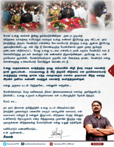 பேரன்பு தம்பி சாந்தனுக்கு சீமான் எழுதிய மடல்!