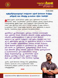 ஆகவே, பஞ்சமி நிலங்களை விரைந்து மீட்டு ஆதித்தமிழ்க்குடி மக்களிடம் ஒப்படைக்க உரிய நடவடிக்கைகளை எடுக்க வேண்டுமென தமிழ்நாடு அரசினை நாம் தமிழர் கட்சி சார்பாக வலியுறுத்துகிறேன்.
