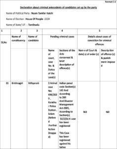 தலைமைச் செய்திகள்கட்சி செய்திகள்நாடாளுமன்றத் தேர்தல் 2024 2024 நாடாளுமன்றத் தேர்தலில் போட்டியிடும் நாம் தமிழர் கட்சி வேட்பாளர்களது வழக்கு தொடர்பான விவரங்கள் (படிவம் C2) ஏப்ரல் 3, 2024 558