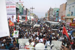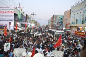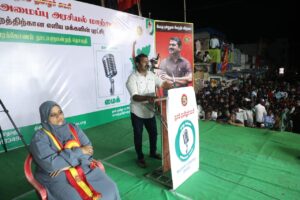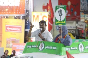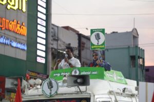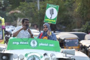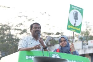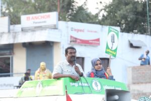 நாம் தமிழர் கட்சி சார்பாக ஒலிவாங்கி (மைக்) சின்னத்தில் போட்டியிடும் அரக்கோணம் நாடாளுமன்றத் தொகுதி வெற்றி வேட்பாளர் பேராசிரியர் ஷா.அப்சியா நஸ்ரின் அவர்களை ஆதரித்து 06-04-2024 அன்று தலைமை ஒருங்கிணைப்பாளர் செந்தமிழன் சீமான் அவர்கள் தலைமையில் ஆற்காடு பேருந்து நிலையம் அருகில், சோளிங்கர் நான்கு கால் மண்டபம் அருகில் மற்றும் வாலாஜாபேட்டை பேருந்து நிலையம் அருகில் வாக்கு சேகரித்து தேர்தல் பரப்புரை நடைபெற்றது.