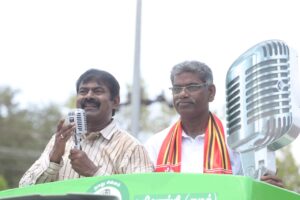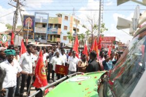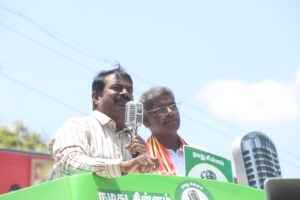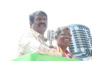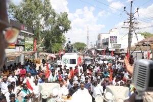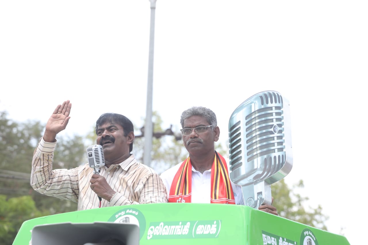 நாம் தமிழர் கட்சி சார்பாக ஒலிவாங்கி (மைக்) சின்னத்தில் போட்டியிடும் கரூர் நாடாளுமன்றத் தொகுதி வெற்றி வேட்பாளர் மருத்துவர் ரெ.கருப்பையா அவர்களை ஆதரித்து 02-04-2024 அன்று தலைமை ஒருங்கிணைப்பாளர் செந்தமிழன் சீமான் அவர்கள் தலைமையில் வடமதுரை பேருந்து நிலையம், மணப்பாறை பேருந்து நிலையம் அருகில் மற்றும் விராலிமலை சோதனைச் சாவடி அருகில் வாக்கு சேகரித்து தேர்தல் பரப்புரை நடைபெற்றது.