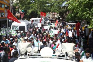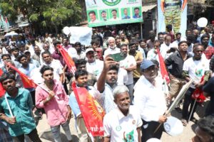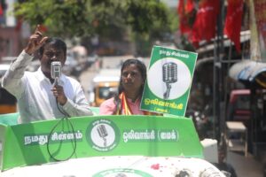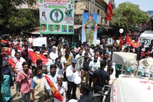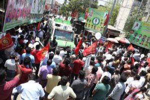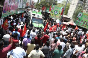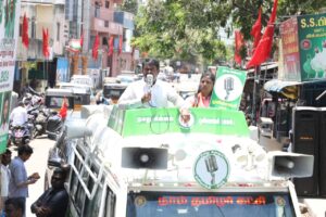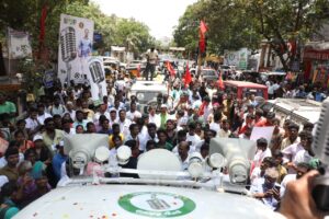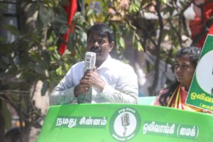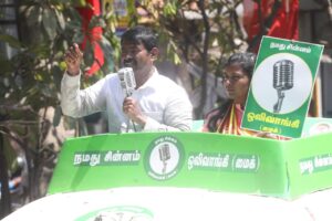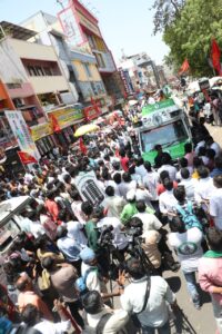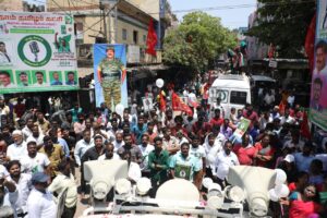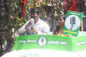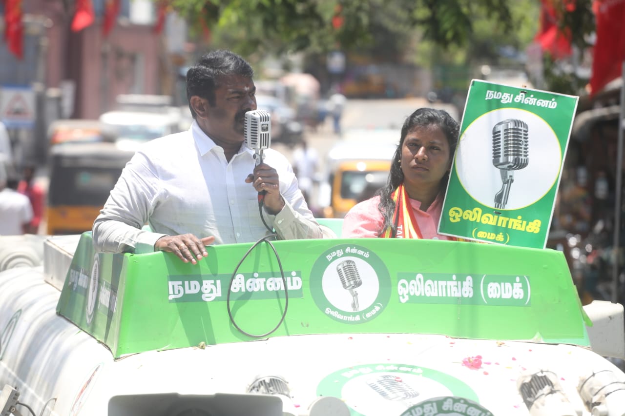 நாம் தமிழர் கட்சி சார்பாக ஒலிவாங்கி (மைக்) சின்னத்தில் போட்டியிடும் வட சென்னை நாடாளுமன்றத் தொகுதி வெற்றி வேட்பாளர் மருத்துவர் அமுதினி அவர்களை ஆதரித்து 05-04-2024 அன்று தலைமை ஒருங்கிணைப்பாளர் செந்தமிழன் சீமான் அவர்கள் தலைமையில் தண்டையார்பேட்டை வ.உ.சி நகர், வண்ணாரப்பேட்டை பகுதியில் மற்றும் அகரம் சந்திப்பு காமராசர் சிலை அருகில் வாக்கு சேகரித்து தேர்தல் பரப்புரை நடைபெற்றது.