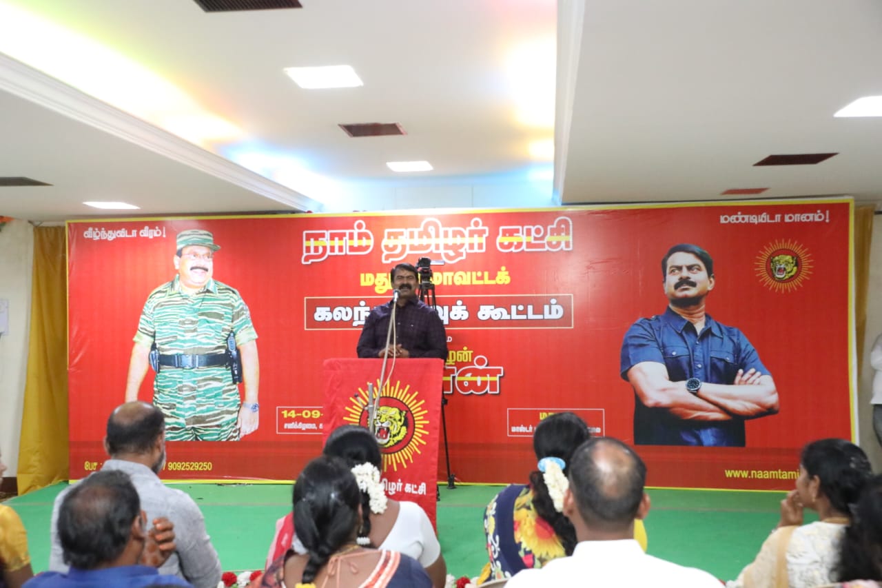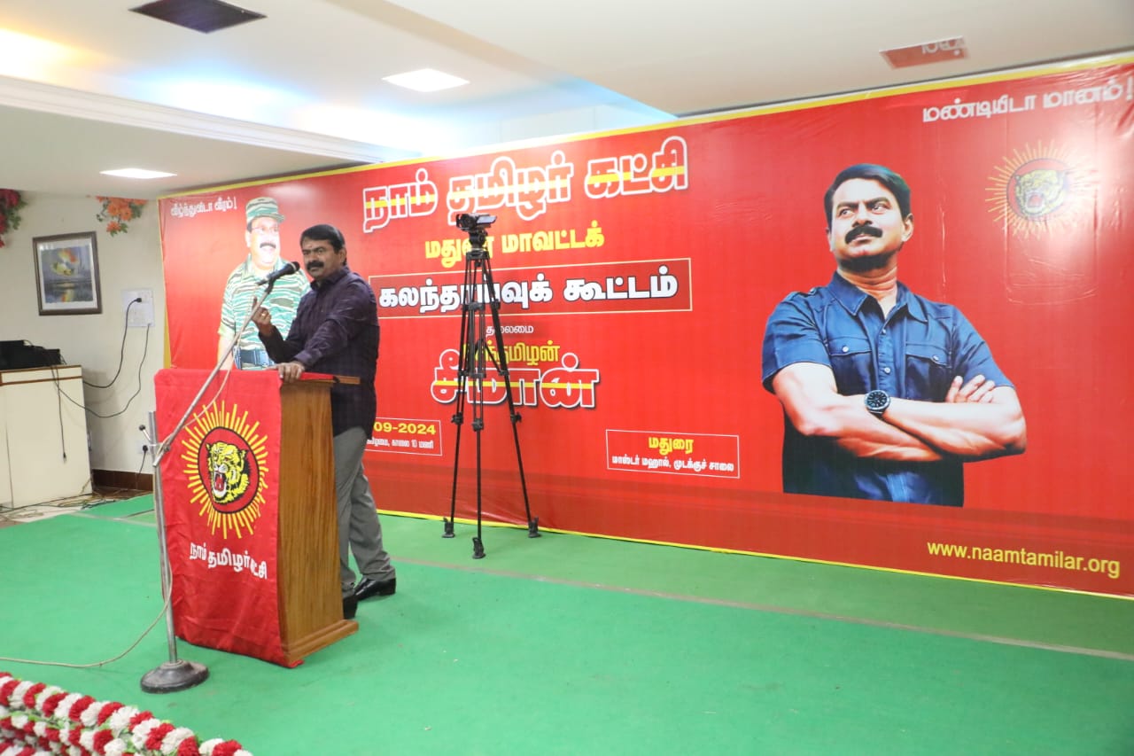 கட்சியின் உள்கட்டமைப்பை மறுசீராய்வு செய்து புதிய பொறுப்பாளர்களை தேர்வு செய்து அறிவிப்பதற்காக நாம் தமிழர் கட்சியின் தலைமை ஒருங்கிணைப்பாளர் செந்தமிழன் சீமான் அவர்களின் தலைமையில் 13-09-2024 அன்று காலை 10 மணியளவில் மதுரை முடக்குச் சாலையில் அமைந்துள்ள மாஸ்டர் திருமண அரங்கத்தில் மதுரை மாவட்டக் கலந்தாய்வுக் கூட்டம் நடைபெற்றது.
