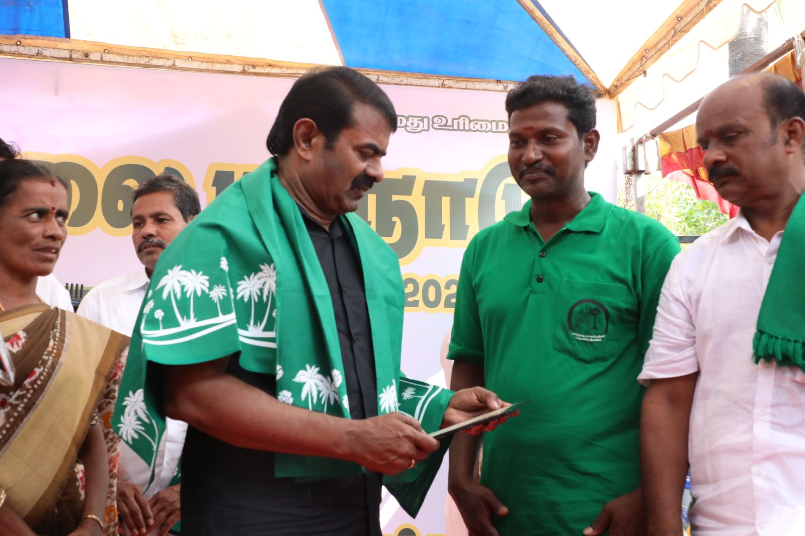 இதில், நாம் தமிழர் கட்சியின் தலைமை ஒருங்கிணைப்பாளர் செந்தமிழன் சீமான் அவர்கள் பங்கேற்று பனையேறும் தொழிலாளர்களின் கோரிக்கைகளை வலியுறுத்தி சிறப்புரையாற்றினார்.