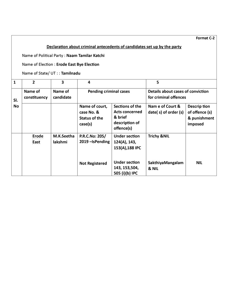 ஈரோடு கிழக்கு இடைத்தேர்தல் 2025 | வேட்பாளர் மா.கி.சீதாலட்சுமி வழக்கு விவரங்கள் Format C2