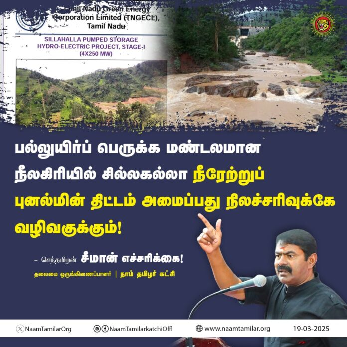 பல்லுயிர்ப் பெருக்க மண்டலமான நீலகிரியில் சில்லகல்லா நீரேற்றுப் புனல்மின் திட்டம் அமைப்பது நிலச்சரிவுக்கே வழிவகுக்கும்! – சீமான் எச்சரிக்கை