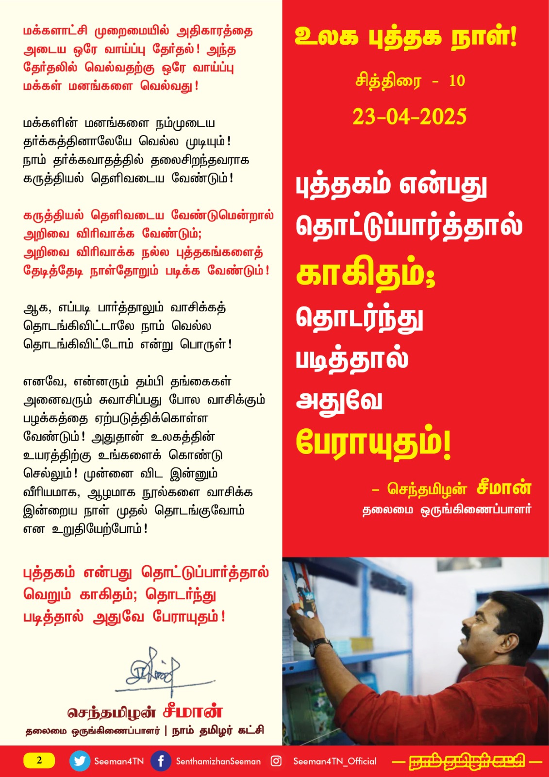 புத்தகம் என்பது தொட்டுப்பார்த்தால் வெறும் காகிதம்; தொடர்ந்து படித்தால் அதுவே பேராயுதம்!