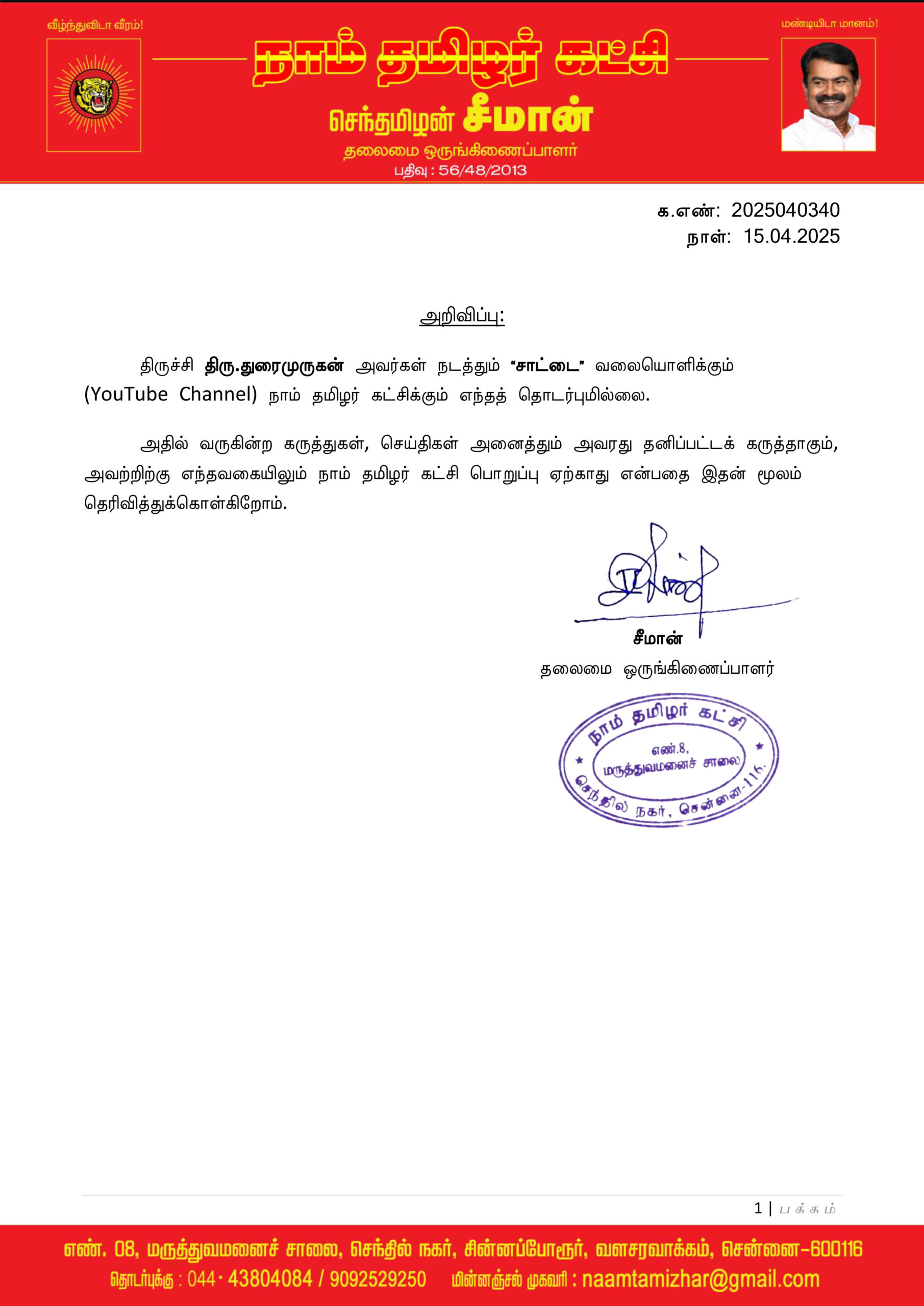 (YouTube Channel) நாம் தமிழர் கட்சிக்கும் எந்தத் தொடர்புமில்லை.