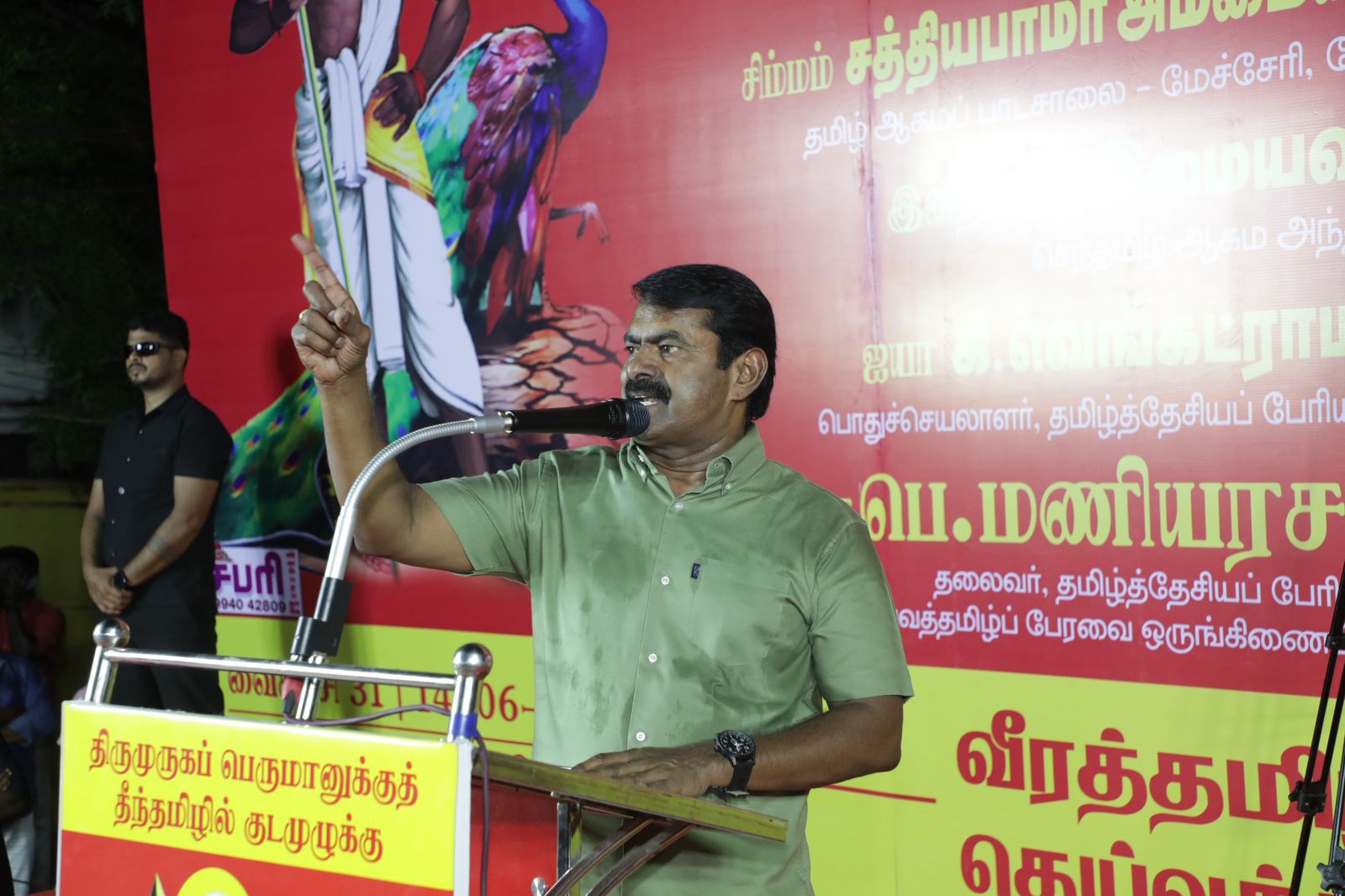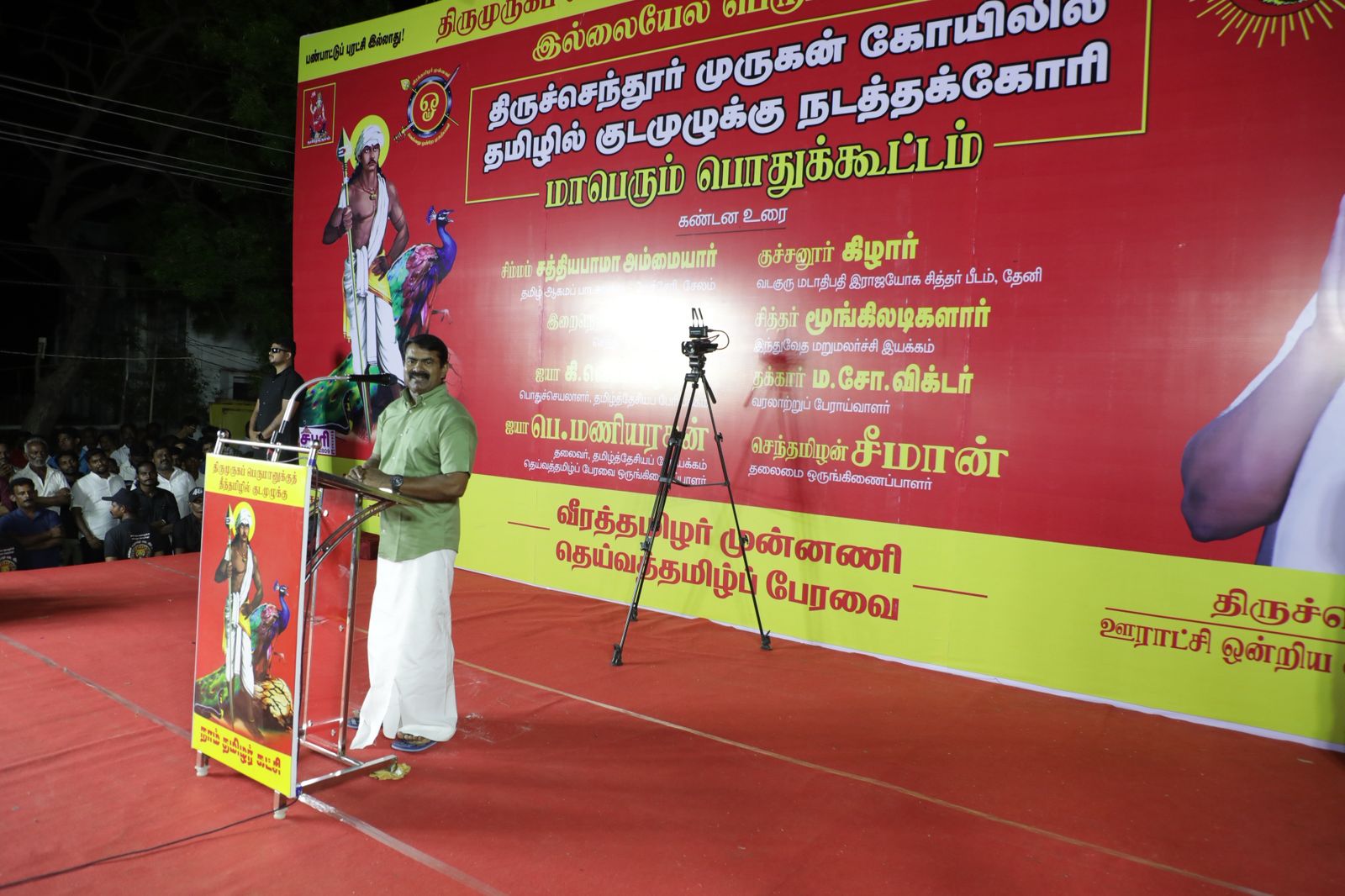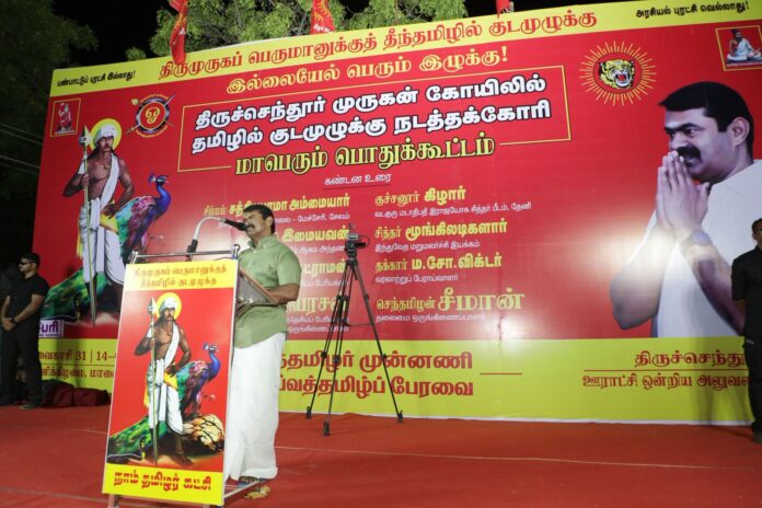 திருமுருகனுக்குத் தீந்தமிழில் குடமுழுக்கு! சீமான் தலைமையில் மாபெரும் பொதுக்கூட்டம்!