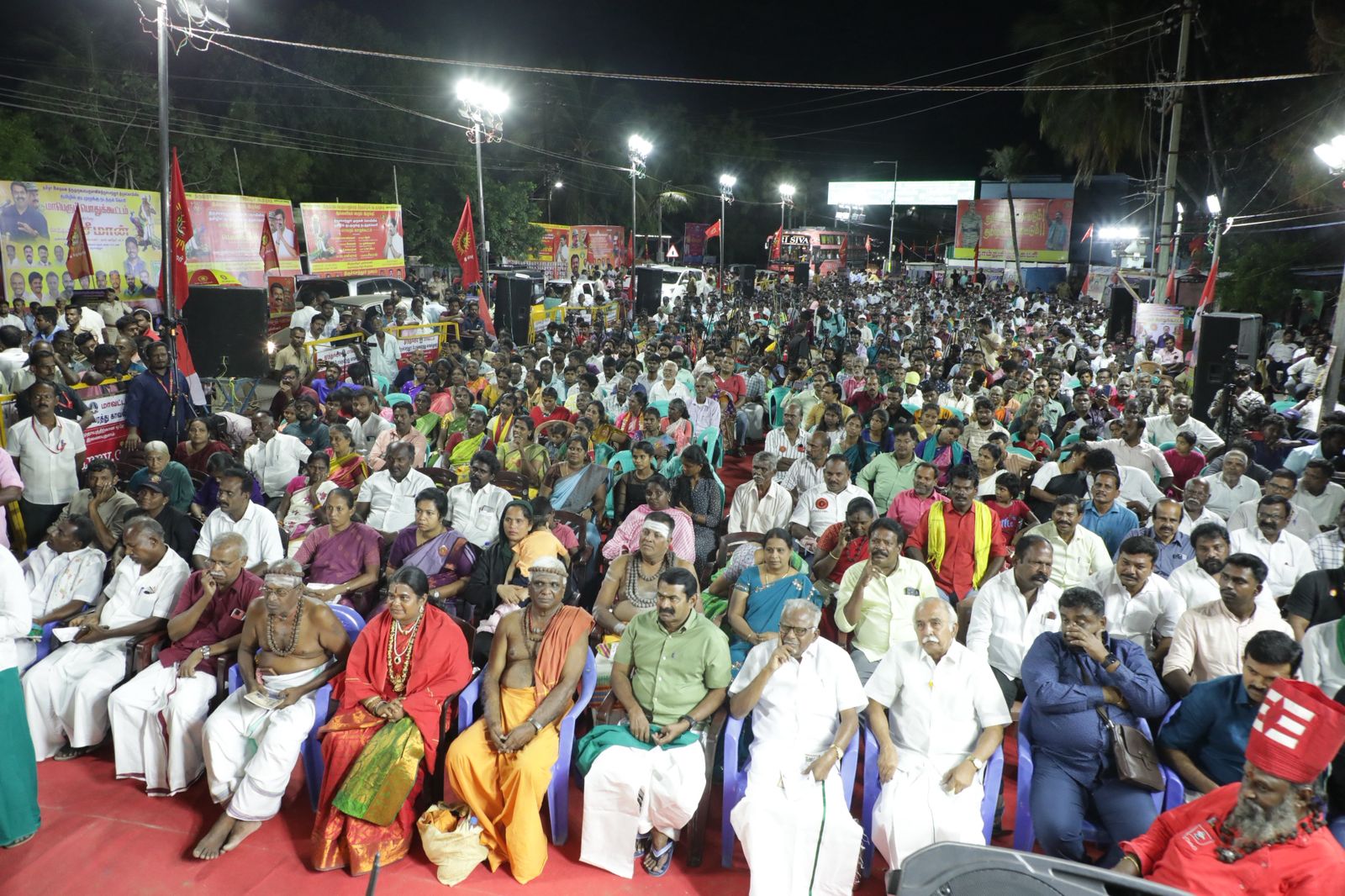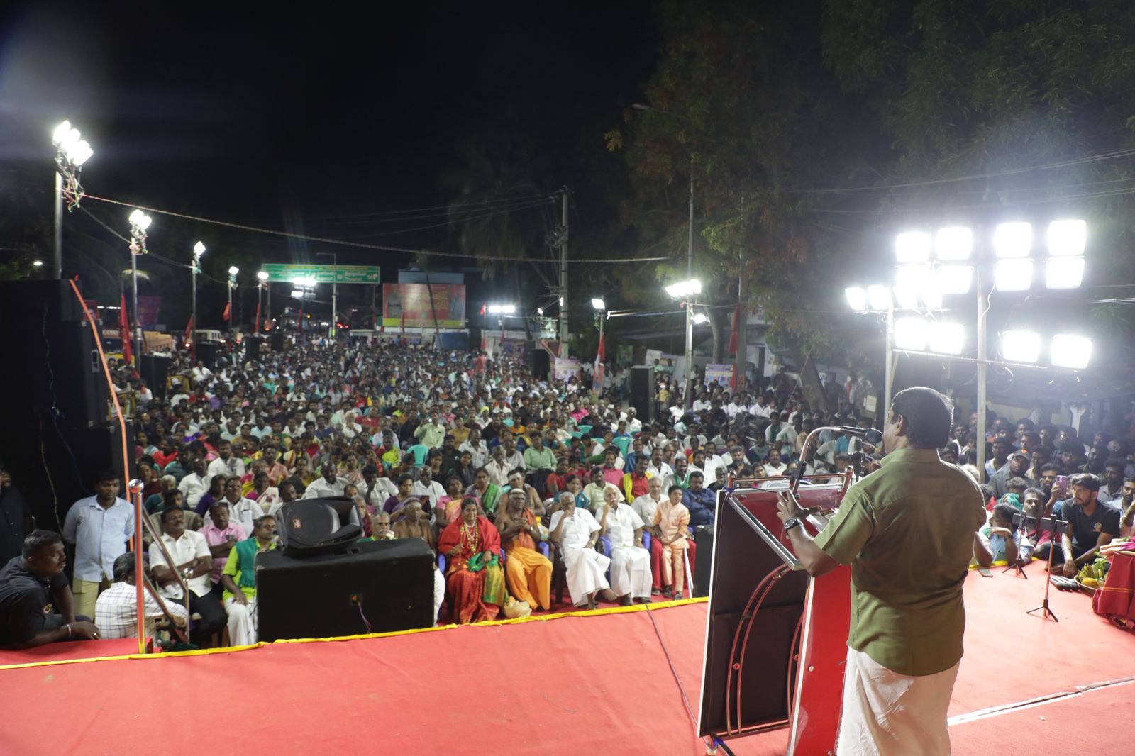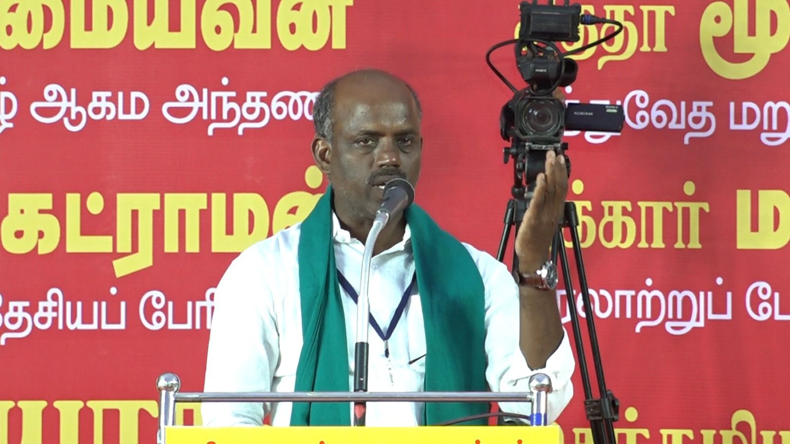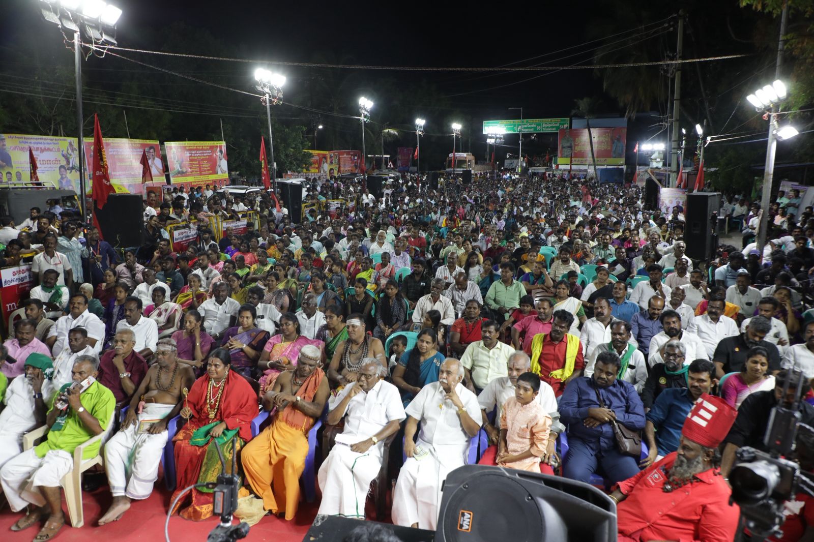 திருச்செந்தூரில் திருமுருகனுக்குத் தீந்தமிழில் குடமுழுக்கு நடத்தக்கோரி, ஐயா பெ.மணியரசன் மற்றும் செந்தமிழன் சீமான் அவர்கள் தலைமையில், 14-06-2025 அன்று, திருசெந்தூர் ஊராட்சி ஒன்றிய அலுவலகம் எதிரில் மாபெரும் பொதுக்கூட்டம் நடைபெற்றது!