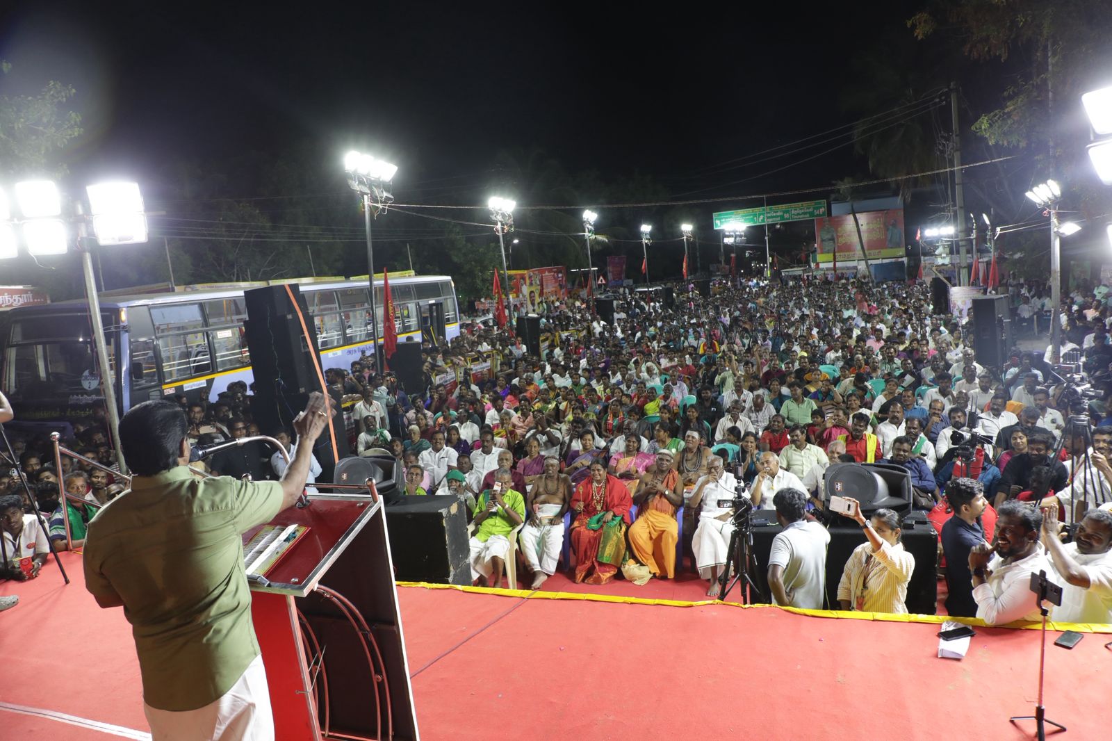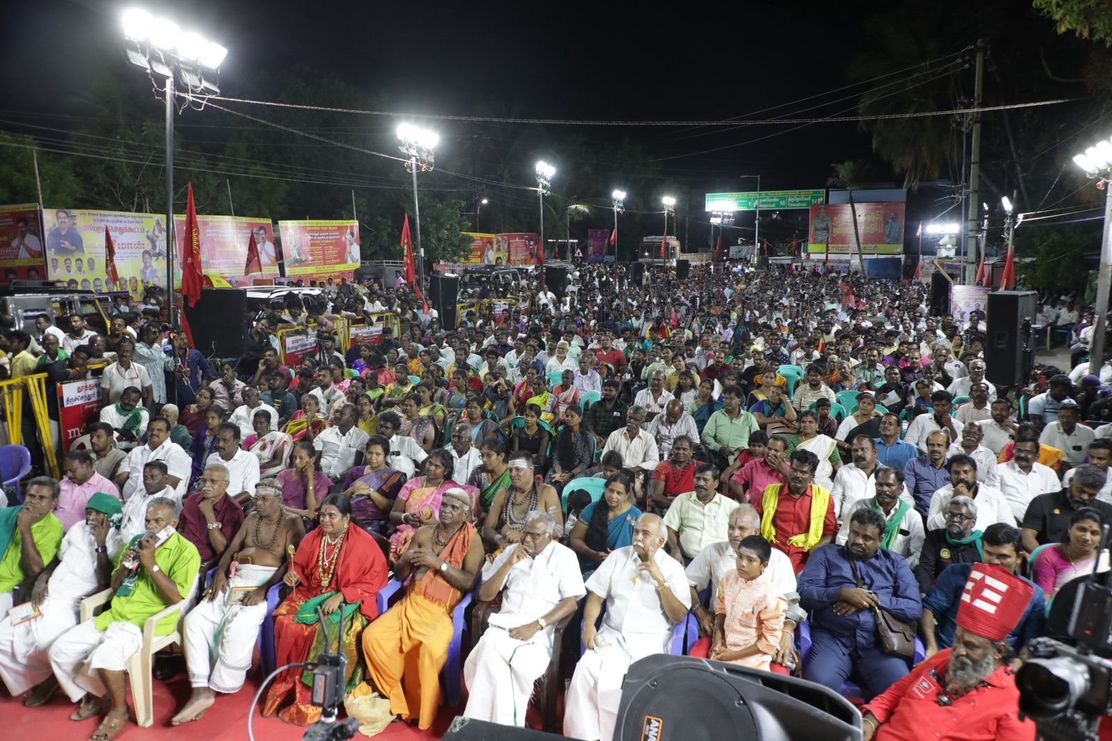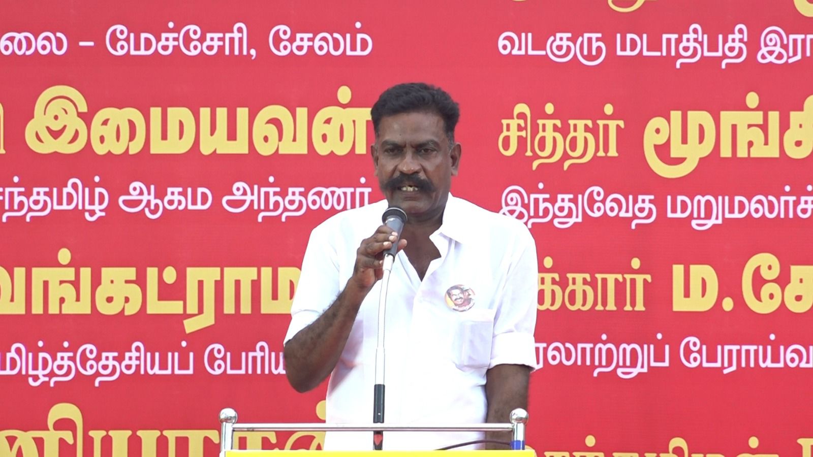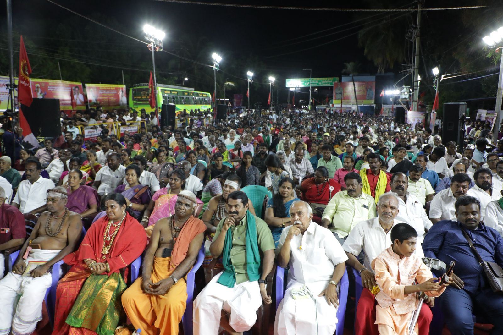 திருச்செந்தூரில் திருமுருகனுக்குத் தீந்தமிழில் குடமுழுக்கு நடத்தக்கோரி, ஐயா பெ.மணியரசன் மற்றும் செந்தமிழன் சீமான் அவர்கள் தலைமையில், 14-06-2025 அன்று, திருசெந்தூர் ஊராட்சி ஒன்றிய அலுவலகம் எதிரில் மாபெரும் பொதுக்கூட்டம் நடைபெற்றது!