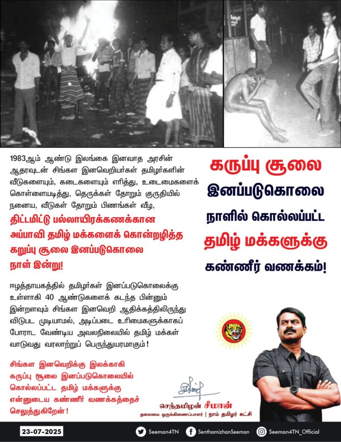 கருப்பு சூலை: இனப்படுகொலையில் கொல்லப்பட்ட தமிழ் மக்களுக்கு சீமான் கண்ணீர் வணக்கம்!