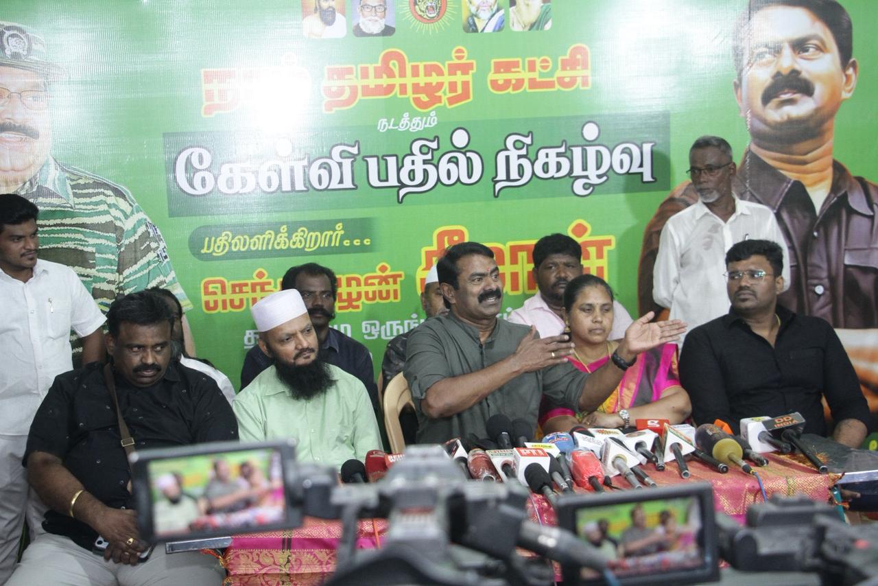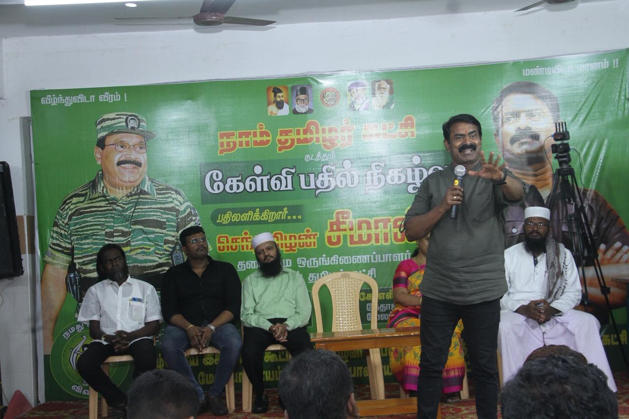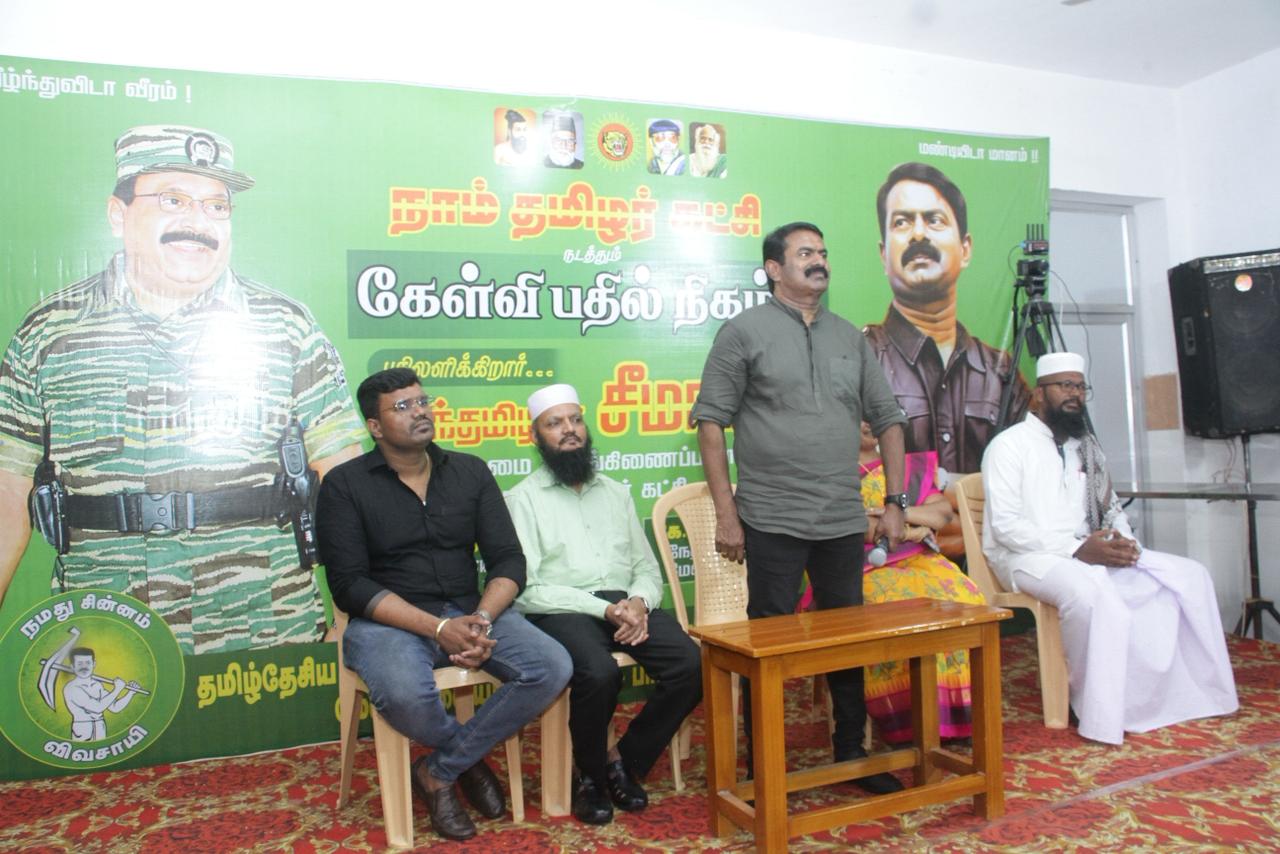 ஐப்பசி 11ஆம் நாள் 28-10-2025 அன்று காலை, பாளையங்கோட்டை சட்டமன்றத் தொகுதிக்குட்பட்ட மேலப்பாளையம், நேதாஜி சாலை, மாட்டுச்சந்தை சாலை, கே.எஸ்.மகால் அரங்கத்தில் நாம் தமிழர் கட்சியின் தலைமை ஒருங்கிணைப்பாளர் செந்தமிழன் சீமான் அவர்கள் இஸ்லாமியச் சொந்தங்களுடன் கலந்துரையாடிய சிறப்பு கேள்வி-பதில் நிகழ்ச்சி நடைபெற்றது.