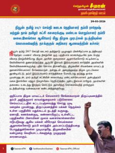 நியூஸ் தமிழ் 24/7 செய்தி ஊடக நெறியாளர் தம்பி ராஜேஷ் மற்றும் நாம் தமிழர் கட்சி காரைக்குடி மண்டல பொறுப்பாளர் தம்பி மலை.இளங்கோ ஆகியோர் மீது திமுக முரடர்கள் நடத்தியுள்ள கொலைவெறித் தாக்குதல் அதிகார ஆணவத்தின் உச்சம்!