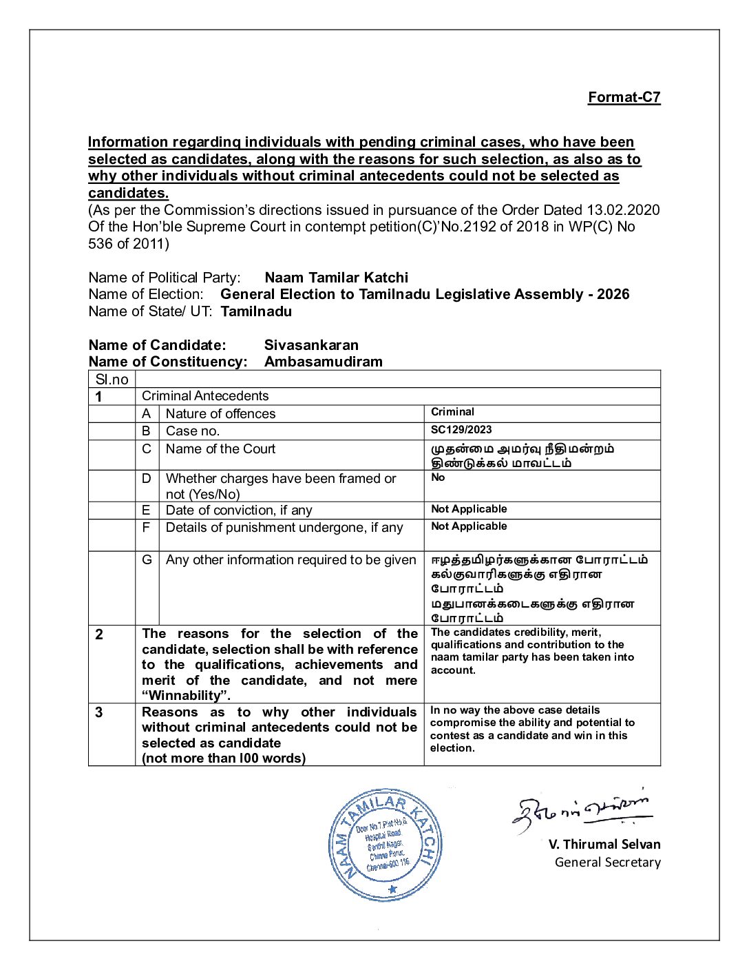 தலைமைச் செய்திகள்அறிவிப்புகள் தேர்தல் 2026 – அம்பாசமுத்திரம் தொகுதி வேட்பாளர் வழக்கு விபரம் ஏப்ரல் 10, 2026 5 Format C7_Ambasamudram