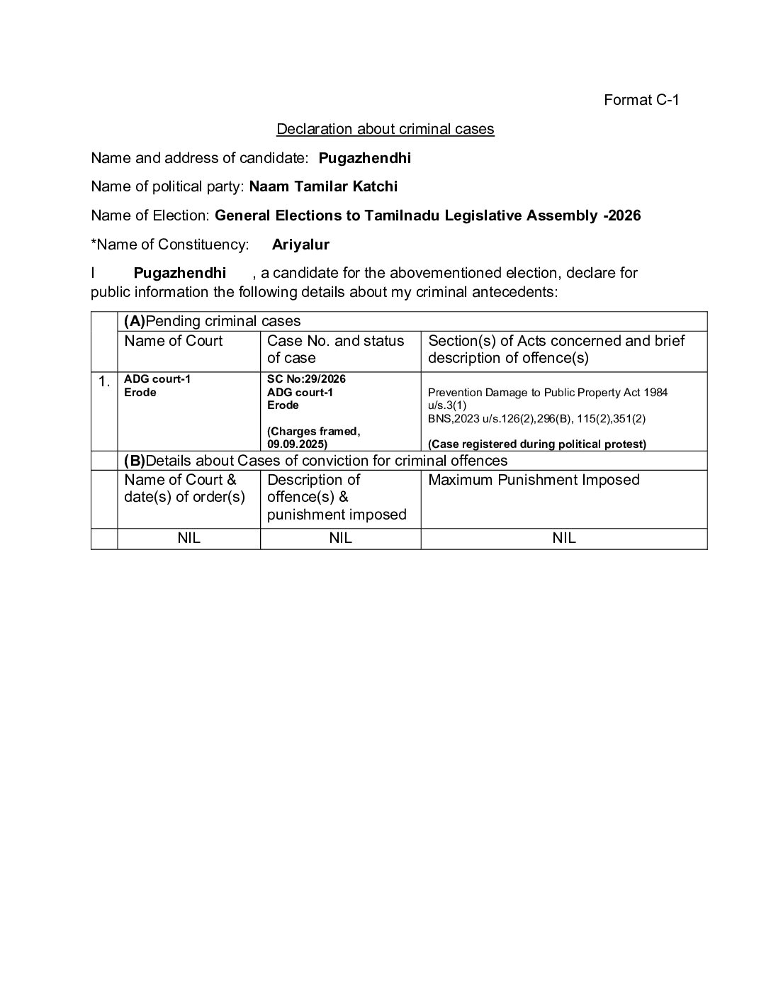 தலைமைச் செய்திகள்அறிவிப்புகள் தமிழ்நாடு சட்டமன்றத் தேர்தல் 2026 – நாம் தமிழர் கட்சி வேட்பாளர்களின் வழக்கு விபரங்கள் (FORM -C1 ) ஏப்ரல் 5, 2026 88 Format_C1 – Ariyalur Format_C1 – Athur Dindugal Format_C1 – Chidambaram Format_C1 – Coimbatore South Format_C1 – Erode East Format_C1 – Erode West Format_C1 – Gobi Format_C1 – Kandarvakottai Format_C1 – Kangeyam Format_C1 – Karaikudi Format_C1 – Kattumannarkoil Format_C1 – Killiyur Format_C1 – Kilvelur Format_C1 – Kulachal Format_C1 – Kulithalai Format_C1 – Kumbakonam Format_C1 – Kunnam Format_C1 – Manapparai Format_C1 – Mannargudi Format_C1 – Modakurichi Format_C1 – Nagercoil Format_C1 – Namakkal Format_C1 – Nanguneri Format_C1 – Natham Format_C1 – Neyveli Format_C1 – Ottanchathiram Format_C1 – Padmanabapuram Format_C1 – Pennagaram Format_C1 – Perundurai Format_C1 – Pudukkottai Format_C1 – Radhapuram Format_C1 – Rajapalayam Format_C1 – Sattur Format_C1 – Srivilliputhur Format_C1 – Thanjavur Format_C1 – Thirumayam Format_C1 – ThiruthuraiPoondi Format_C1 – Thiruvadanai Format_C1 – Thousand Lights Format_C1 – Tindivanam Format_C1 – Tirunelveli Format_C1 – Tirupattur Sivagangai Format_C1 – Tiruppur NOrth Format_C1 – Uthiramerur Format_C1 – Vandavasi Format_C1 – Vanur Format_C1 – Vasudevanallur Format_C1 – Vedaranyam Format_C1 – Veerapandi Format_C1 – Vilavankodu Format_C1 – Virugambakkam