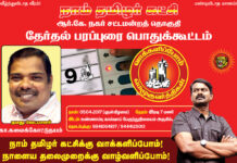 நடைபெறவிருக்கும் இராதாகிருஷ்ணன் நகர் சட்டமன்ற இடைத்தேர்தலில் நாம் தமிழர் கட்சியின் வேட்பாளராக கா.கலைக்கோட்டுதயம் அவர்கள் போட்டியிடுகிறார். நாளை 23-03-2017 (வியாழக்கிழமை) மாலை 5 மணிக்கு, சென்னை தண்டையார்பேட்டை நெடுஞ்சாலையில் அமைந்துள்ள செளந்தரபாண்டி சுப்பம்மாள்...