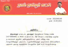திருவள்ளூர் மாவட்டம், அம்பத்தூர் தொகுதியைச் சேர்ந்த ச.அருண்குமார் (01332385203) கட்சியின் கட்டுப்பாட்டை மீறி செயற்பட்டதையடுத்து ஒழுங்கு நடவடிக்கைக் குழுவின் அறிவுறுத்தலின்படி, அவர் வகித்து வந்த பொறுப்பிலிருந்தும்...