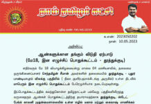 க.எண்: 2023050196 நாள்: 10.05.2023 அறிவிப்பு: பெண்களுக்கான தங்கும் விடுதி ஏற்பாடு (மே18, இன எழுச்சிப் பொதுக்கூட்டம் - தூத்துக்குடி)  எதிர்வரும் மே 18 வியாழக்கிழமை அன்று மாலை 04 மணியளவில், மாபெரும் இன எழுச்சிப் பொதுக்கூட்டம் தலைமை ஒருங்கிணைப்பாளர்...