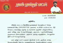 சு.காமாட்சி பிரபு (10412937724) அவர்கள், கட்சியின் கட்டுப்பாட்டை மீறி செயற்பட்டதையடுத்து ஒழுங்கு நடவடிக்கைக் குழுவின் பரிந்துரையின்படி, அவர் வகித்து வந்த பொறுப்பிலிருந்தும், அடிப்படை உறுப்பினரிலிருந்தும் முழுமையாக...