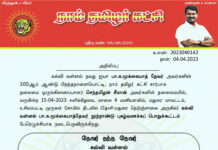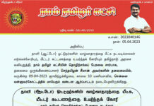 க.எண்: 2023040145 நாள்: 04.04.2023 அறிவிப்பு: நாம் தமிழர் கட்சியின் தலைமை ஒருங்கிணைப்பாளர் செந்தமிழன் சீமான் அவர்களின் அறிவுறுத்தலின்படி, கட்சியின் அதிகாரப்பூர்வ இதழுக்கு ஒவ்வொரு பொறுப்பாளர்களும் சந்தாதாரராவது கட்டாயமாக்கப்படுகிறது. தற்போது பொறுப்பில் உள்ள கட்சியின் மாநில, மண்டல,...