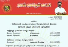 க.எண்: 2022120590 நாள்: 23.12.2022 அறிவிப்பு: செங்கல்பட்டு வடக்கு மாவட்டப் பொறுப்பாளர்கள் நியமனம் (தாம்பரம் மற்றும் பல்லாவரம் தொகுதிகள்) வீரத்தமிழர் முன்னணிப் பொறுப்பாளர்கள் இணைச் செயலாளர் ச.வேதநாயகம் 14694404963 துணைச் செயலாளர் ஜ.ஈஸ்வரன் 01334642829 வீரக்கலைப் பாசறைப் பொறுப்பாளர்கள் செயலாளர் அ.சையத் சிராசுதீன் 01334383734 மேற்காண் அனைவரும் நாம் தமிழர் கட்சி – செங்கல்பட்டு...