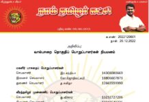 க.எண்: 2022120581                                              நாள்: 18.12.2022   அறிவிப்பு திருப்பத்தூர் மாவட்டம், திருப்பத்தூர் தொகுதியைச் சேர்ந்த அர.கோவேந்தன் (10243548801) அவர்கள், வகித்து வந்த தொகுதி துணைத்தலைவர் பொறுப்பில் இருந்து மட்டும் விடுவிக்கப்பட்டு அடிப்படை உறுப்பினராகத் தொடர்வார்.         சீமான் தலைமை ஒருங்கிணைப்பாளர் நாம் தமிழர்...