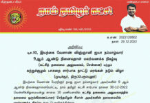 க.எண்: 2022120602 நாள்: 29.12.2022 அறிவிப்பு: டிச.30, இயற்கை வேளாண் விஞ்ஞானி ஐயா நம்மாழ்வார் 9ஆம் ஆண்டு நினைவுநாள் மலர்வணக்க நிகழ்வு (கட்சித் தலைமை அலுவலகம், சென்னை) மற்றும் சுற்றுச்சூழல் பாசறை சார்பாக நாட்டு மரங்கள் நடும் விழா (முடிச்சூர், திருப்பெரும்புதூர்) இயற்கை வேளாண்...