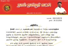 மேற்காண் அனைவரும் நாம் தமிழர் கட்சி – பூம்புகார் தொகுதிப் பொறுப்பாளர்களாக...