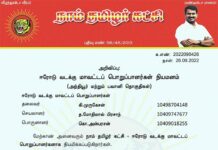 க.எண்: 2022090427அ நாள்: 26.09.2022 அறிவிப்பு: ஈரோடு தெற்கு மாவட்டப் பொறுப்பாளர்கள் நியமனம் (ஈரோடு மேற்கு மற்றும் பெருந்துறை தொகுதிகள்) ஈரோடு தெற்கு மாவட்டப் பொறுப்பாளர்கள் தலைவர் அ.மூர்த்தி 10413539074 செயலாளர் நா.தினேஷ் 10512348981 பொருளாளர் ச.தனபால் 16134836300 மேற்காண் அனைவரும் நாம் தமிழர் கட்சி - ஈரோடு தெற்கு மாவட்டப் பொறுப்பாளர்களாக நியமிக்கப்படுகிறார்கள். இவர்கள்...