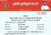 மேற்காண் அனைவரும் நாம் தமிழர் கட்சி - தர்மபுரி தொகுதிப் பொறுப்பாளர்களாக நியமிக்கப்படுகிறார்கள்.