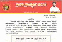 நாம் தமிழர் கட்சியின் மாணவர் மற்றும் இளைஞர் பாசறை சார்பாக சென்னை மண்டல அளவில் நடத்தப்படும் அரசியல் பயிற்சிப்பட்டறை 26-06-2022 அன்று மதியம் 2 மணியளவில் சென்னை, வளசரவாக்கம், எஸ்.வி.எஸ். நகரிலுள்ள சுபிக்சா...