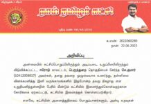 அண்மையில் கட்சிப்பொறுப்பிலிருந்தும் அடிப்படை உறுப்பினரிலிருந்தும் விடுவிக்கப்பட்ட, ஈரோடு மாவட்டம், பெருந்துறை தொகுதியைச் சேர்ந்த செ.குமார் (10412008017) அவர்கள், தனது தவறை முழுமையாக உணர்ந்து, தன்னிலை விளக்கமளித்து இனி வருங்காலங்களில் இதுபோன்ற...