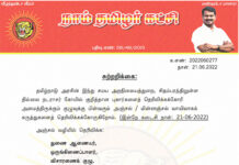 ஆறு தமிழர்கள் விடுதலையை வலியுறுத்தியும், ‘அக்னிபத்’ திட்டத்தைக் கைவிடக்கோரியும், நாம் தமிழர் கட்சி சார்பாக தலைமை ஒருங்கிணைப்பாளர் செந்தமிழன் சீமான் அவர்களின் தலைமையில் வருகின்ற 03-07-2022 ஞாயிற்றுக்கிழமையன்று காலை...