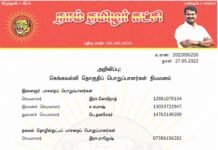 க.எண்: 2022050222 நாள்: 2805.2022 அறிவிப்பு: மேட்டுப்பாளையம் தொகுதிப் பொறுப்பாளர்கள் நியமனம் தலைவர் - க.சண்முகம் - 11536356925 துணைத் தலைவர் - ப.பழனிசாமி - 11419363326 துணைத் தலைவர் - இரா.நட்ராஜ் - 07396672020 செயலாளர் - பொ.கோபாலகிருஷ்ணன் - 11419498733 இணைச் செயலாளர் - அ.அன்சார் அலி - 11048166290 துணைச் செயலாளர் - ஆ.சரவணகுமார் - 10681312663 பொருளாளர் - ப.நித்தியானந்த் - 11419423316 செய்தித் தொடர்பாளர் - ம.முத்துக்குமார் - 11419045275 மேற்காண் அனைவரும் நாம் தமிழர் கட்சி - மேட்டுப்பாளையம் தொகுதிப் பொறுப்பாளர்களாக நியமிக்கப்படுகிறார்கள். இவர்கள் அனைவருக்கும், கட்சியின்...