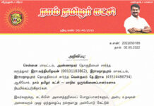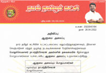 நாம் தமிழர் கட்சியின் தலைமை அலுவலகச் செய்திக்குறிப்பில் கூறியிருப்பதாவது,