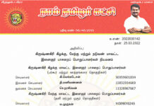க.எண்: 2022030143 நாள்: 25.03.2022 அறிவிப்பு: வேலூர் கிழக்கு மாவட்ட இளைஞர் பாசறைப் பொறுப்பாளர்கள் நியமனம் (வேலூர், அணைக்கட்டு மற்றும் காட்பாடி தொகுதிகள்) செயலாளர் சா.சசிதரன் 16469966628 இணைச் செயலாளர் செ.சேதுராமன் 15070268467 துணைச் செயலாளர் பா.சுரேஷ்பாபு 11487051253 மேற்காண் அனைவரும் நாம் தமிழர் கட்சி – வேலூர்...