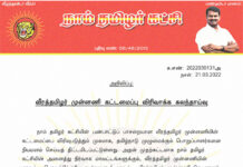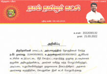 க.எண்: 2022030131அ நாள்: 21.03.2022 அறிவிப்பு: வீரத்தமிழர் முன்னணி கட்டமைப்பு விரிவாக்க கலந்தாய்வு நாம் தமிழர் கட்சியின் பண்பாட்டுப் பாசறையான வீரத்தமிழர் முன்னணியின் கட்டமைப்பை விரிவுபடுத்தும் முகமாக, தமிழ்நாடு முழுமைக்கும் பொறுப்பாளர்களை நியமனம் செய்யத் திட்டமிடப்பட்டுள்ளது. அதன் முதற்கட்டமாக...