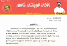 க.எண்: 2022010032 நாள்: 20.01.2022 அறிவிப்பு: திருப்போரூர் தொகுதிப் பொறுப்பாளர்கள் நியமனம் தலைவர் - வி.சந்தோஷ் குமார் - 10804655769 துணைத் தலைவர் - ப.புஷ்பலிங்கம் - 15718871952 துணைத் தலைவர் - சு.நேதாஜி - 01461114988 செயலாளர் - ம.தேவராஜ் - 01341541378 இணைச் செயலாளர் - து.சசி குமார் - 01341955582 துணைச் செயலாளர் - பொ.தமிழரசன் - 12868603096 பொருளாளர் - பெ.ஜெயன் - 01341059667 செய்தித் தொடர்பாளர் - இர.அன்பழகன் - 01341964879 மேற்காண் அனைவரும் நாம் தமிழர் கட்சி - திருப்போரூர் தொகுதிப் பொறுப்பாளர்களாக நியமிக்கப்படுகிறார்கள். இவர்கள் அனைவருக்கும், கட்சியின்...