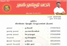மேற்காண் அனைவரும் நாம் தமிழர் கட்சி – புதுக்கோட்டை தொகுதிப் பொறுப்பாளர்களாக நியமிக்கப்படுகிறார்கள். இவர்கள் அனைவருக்கும்,...