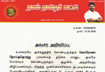 அவசர அறிவிப்பு: கொரோனா நோய்த்தொற்று பரவலைத் தடுக்க மார்ச் 31ஆம் தேதி வரை கட்சியின் அனைத்து நிகழ்வுகளும் நிறுத்தி...