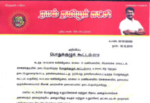 தலைமை அறிவிப்பு: நாம் தமிழர் கட்சி பொதுக்குழுக் கூட்டம்-2019 சென்னையில் கூடுகிறது