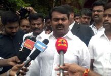 நாம் தமிழர் கட்சியின் தலைமை ஒருங்கிணைப்பாளர்சீமான், மாவட்டவாரியாக அனைத்துநிலை பொறுப்பாளர்களையும் சந்தித்துகட்சியின் உட்கட்டமைப்பை முறைபடுத்திவருகிறார். இன்று 13-08-2018 (திங்கட்கிழமை) காலை 10 மணிமுதல் மாலை 03 மணிவரை திருவள்ளூர் மாவட்டத்திற்குட்பட்ட கும்மிடிப்பூண்டி, மாதாவரம், பொன்னேரி, மற்றும் திருவொற்றியூர் சட்டமன்றத்...