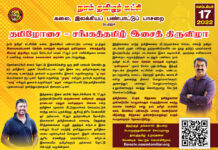 கலை, இலக்கியப் பண்பாட்டுப் பாசறை நடத்தும் இசையமைப்பாளர் ஜேம்ஸ் வசந்தன் வழங்கும் தமிழோசை – சங்கத்தமிழ் இசைத் திருவிழா