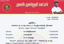 தலைமை அறிவிப்பு: செங்கல்பட்டு வடக்கு மாவட்டப் பொறுப்பாளர்கள் நியமனம் | க.எண்: 202008235 | நாள்: 23.08.2020 செங்கல்பட்டு வடக்கு மாவட்டம் (தாம்பரம் மற்றும் பல்லாவரம் தொகுதிகள் உள்ளடக்கியது) தலைவர்            -  வா.மகேந்திரவர்மன்              - 01334001609 செயலாளர்         ...