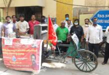 தானி ஓட்டுனர்களுக்கு நிவாரண பொருட்கள் வழங்கும் நிகழ்வு- வேளச்சேரி தொகுதி