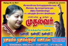 ராஜபக்சேவை போர்க்குற்றவாளியாகவும் இலங்கை மீது பொருளாதார தடை விதிக்கவேண்டுமென்று சட்டசபையில் தீர்மாணம் நிறைவேற்றிய தமிழக முதல்வர் அவர்களுக்கு நன்றி தெரிவித்து மதுக்கரை ஒன்றியம் கோவை மாவட்டம் நாம் தமிழர் கட்சி ஒட்டியுள்ள சுவரொட்டி.