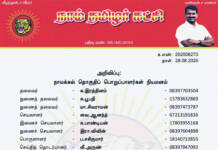 க.எண்: 202008271 நாள்: 28.08.2020 தலைமை அறிவிப்பு:  இராசிபுரம் தொகுதிப் பொறுப்பாளர்கள் நியமனம் தலைவர்            -  மு.சேகர்                        - 08399116452 துணைத் தலைவர்     -  சீ.கோபால்                    - 08399615004 துணைத்...